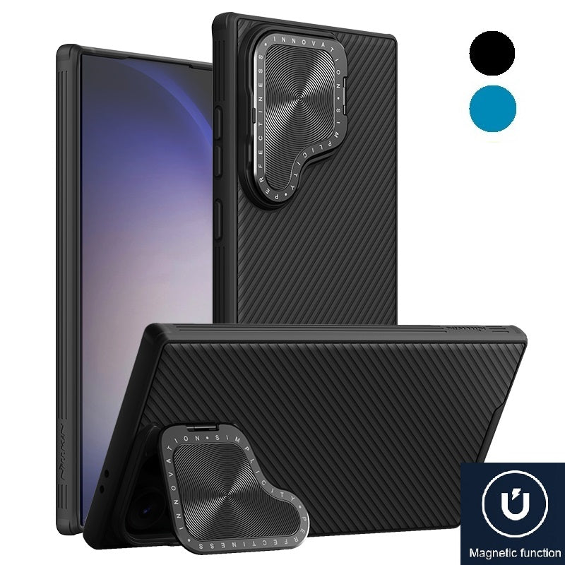 Nillkin Samsung S24 Series Phone Stand/Lens Cover 2 in 1,Built-in magnetic function,Four-corner Airbag,Anti-Slip Phone Case