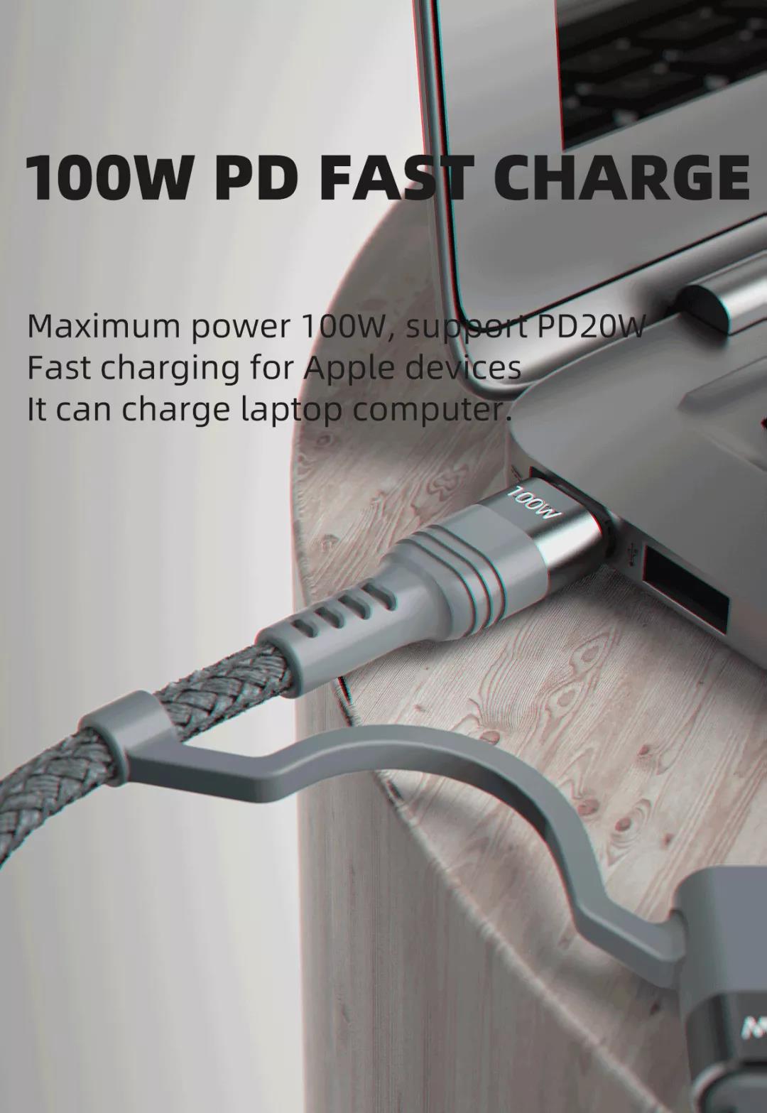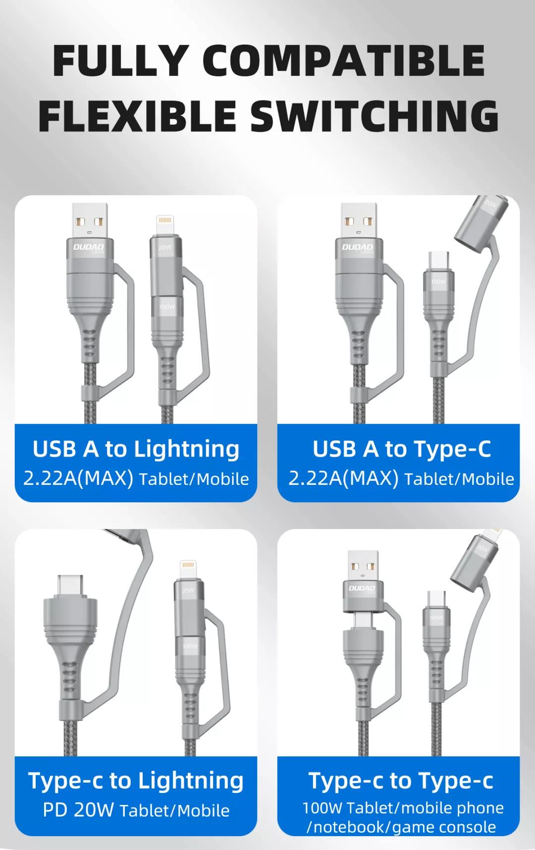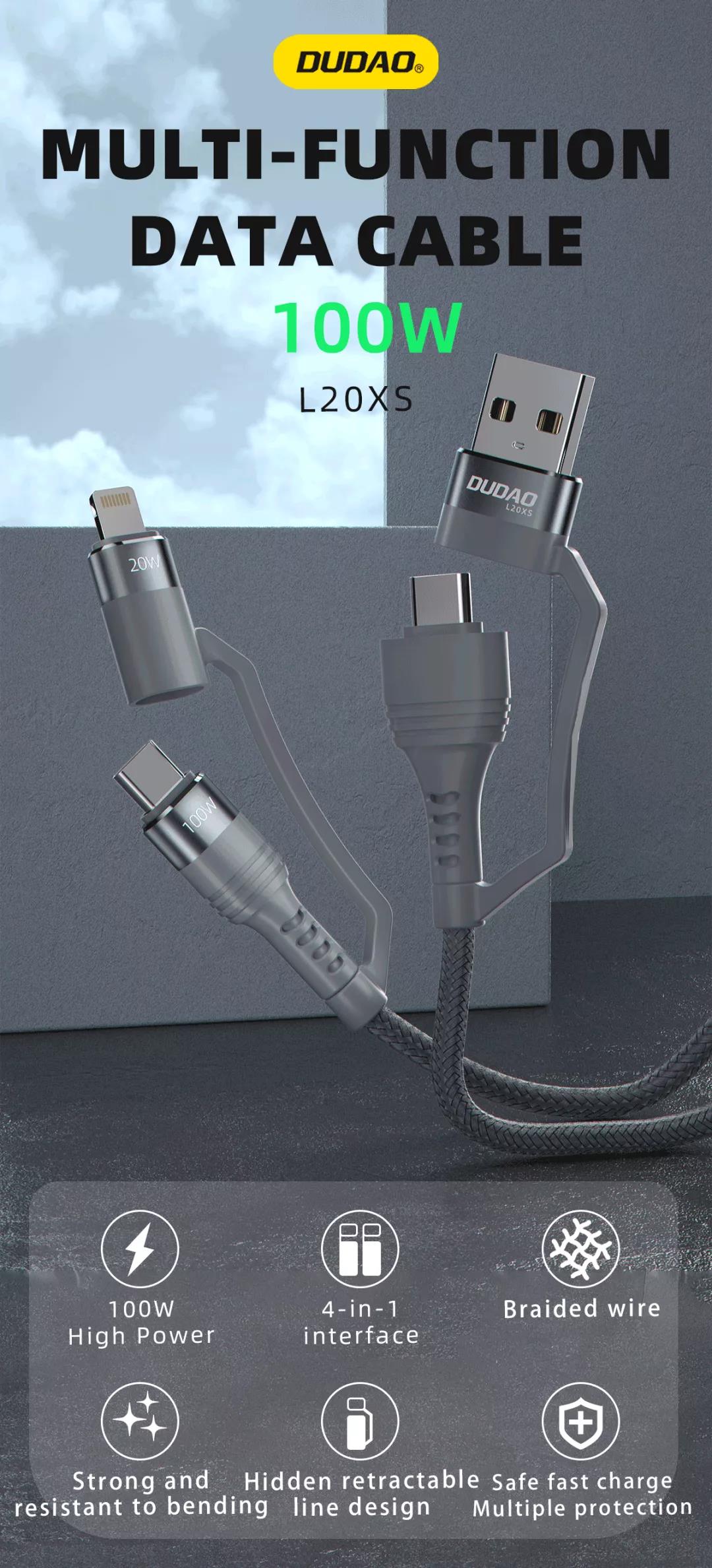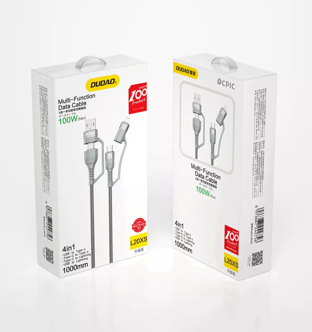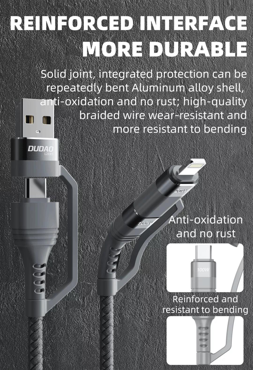 Dudao 升級版 4合1 USB / Type-C轉Lightning / Type-C 1米100W PD 多功能快充數據線 L20XS