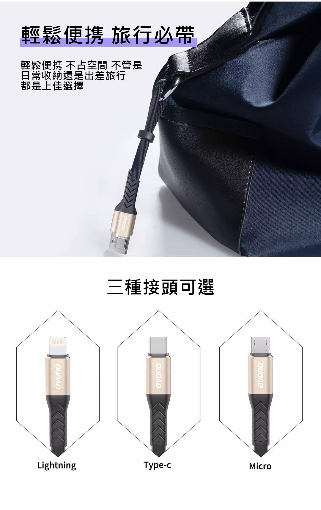 Dudao 5A Lightning / Type-C 23cm疾速充電線方便攜帶20000次摺曲測試